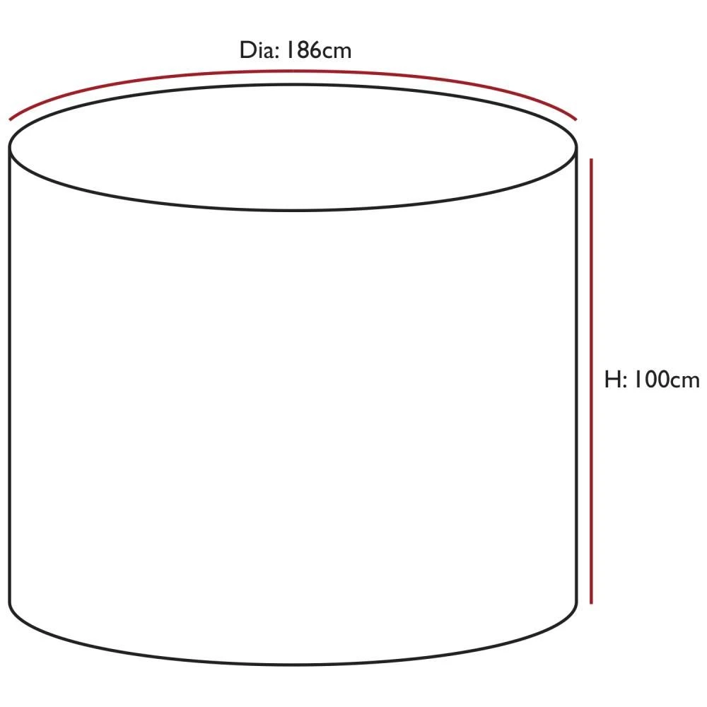 - SPECIFICATIONS – Size: D: 186cm x H: 100cm. Colour: Black. Material: 600D PVC backed woven polyester. Weight: 900g