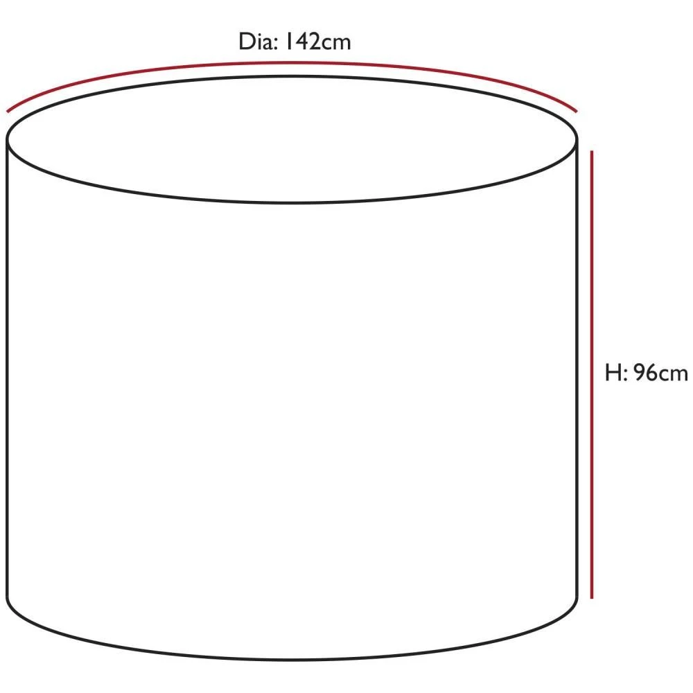 - SPECIFICATIONS – Size: D: 142cm x H: 96cm. Colour: Black. Material: 600D PVC backed woven polyester. Weight: 620g