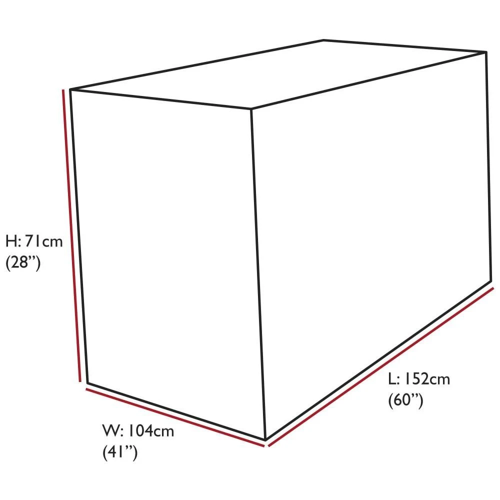 - SPECIFICATIONS – Size: L: 152cm W:104cm x H: 71cm. Colour: Black. Material: 600D PVC backed woven polyester. Weight: 510g