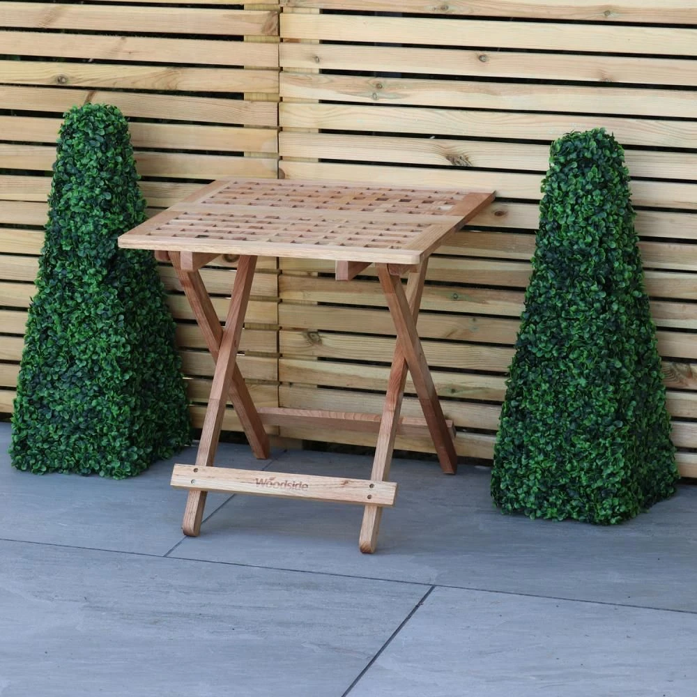 Not only is it a spectacular design, but it’s also a diverse design as it’s able to live inside or outside and sits at a height that makes it accessible for loungers and low-lying sun beds. Its foldable mechanics are easy to operate it making it a stylish choice to take camping or even to the beach. The walnut construction provides a robust constitution that will see it lasting after many years of use.